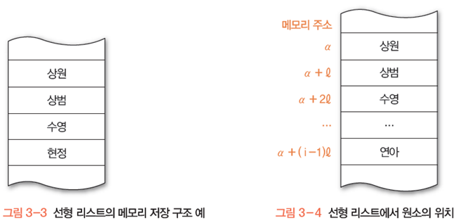 - 원소들의 논리적인 순서와 메모리에 저장하는 물리적인 순서가 같은 구조로 되어 있음