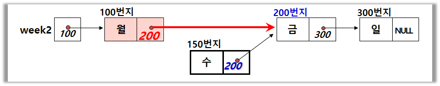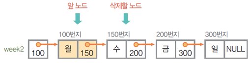 - 앞 노드에 삭제할 노드의 링크 필드값 저장