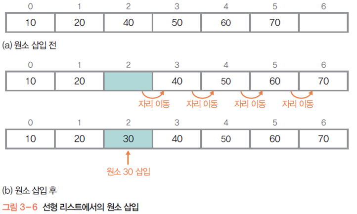 - 데이터를 중간에 삽입하거나 중간 데이터를 삭제할 경우 많은 양의 데이터 이동 발생