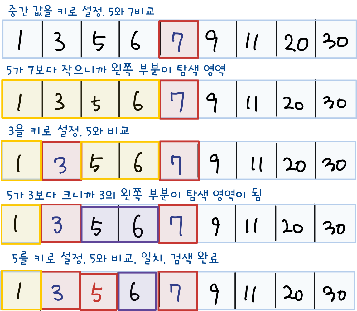 사전이나 전화번호부를 탐색하는 방법과 동일