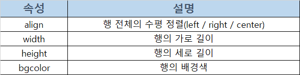 <tr> : 테이블 내에 한 행을 정의하는 태그