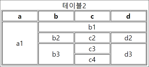 <tr><td rowspan="2">b3</td><td>c3</td><td rowspan="2">d3</td></tr>