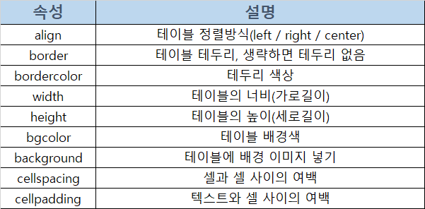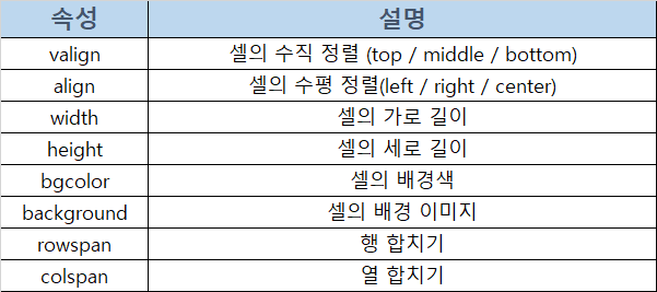 <td> : 테이블 내의 한 열, 즉 셀을 만들 때 사용하는 태그