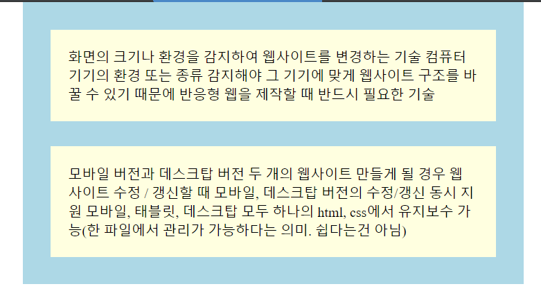 화면을 제어할 '뷰포트'와 화면의 크기나 환경을 감지하여 구조를 바꿔줄 '미디어 쿼리' 필요