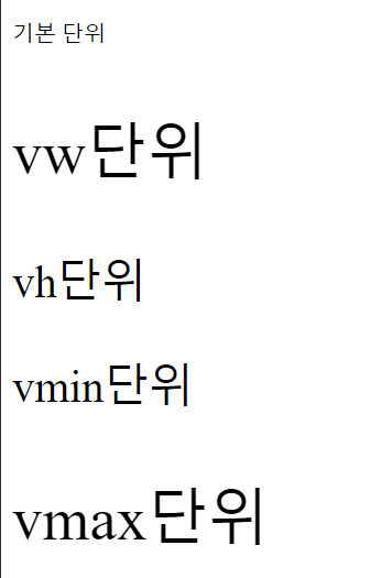 vw, vh, vmin, vmax 단위를 사용하면 브라우저의 비율에 따라 글자 크기가 늘어나거나 줄어듦